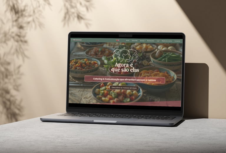 Website, conteúdo e estrutura digital para um projeto híbrido de catering e comunicação.
